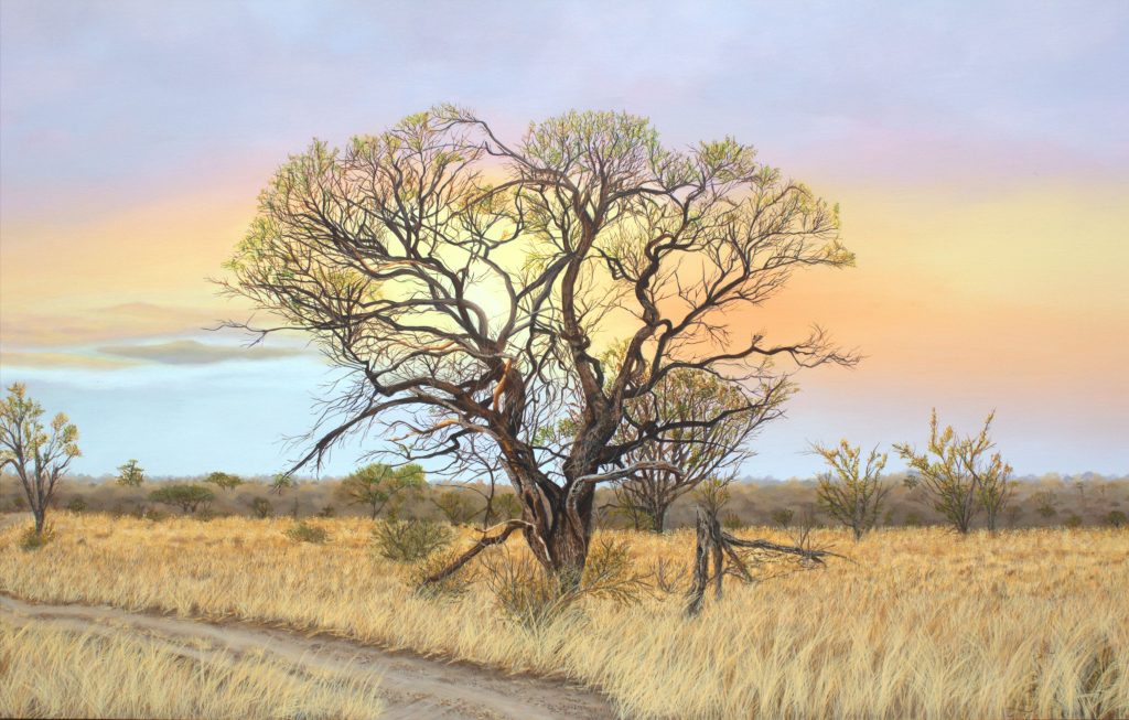 In 2019 she and her husband moved to Marloth Park, situated next to the Kruger National Park, where she continued her journey onto wild life centred in the bush. She rediscovered her childhood fondness of the bush in bringing majestic fauna to life through her paintings.