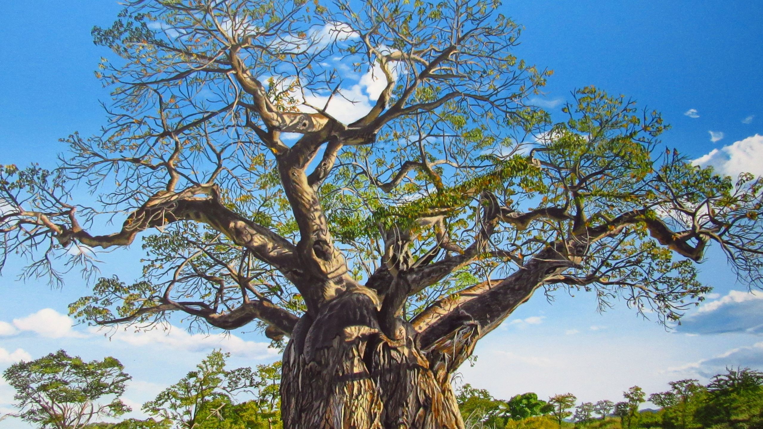 To be honest, it took me quite a while to finish this painting. In addition to the ever-time consuming, painstaking detail – which is my favorite part of the process – my family and I had some personal challenges to deal with as well. As I slowly progressed with this tree, I realized that difficult challenges in our lives do leave scars, and I wonder how many challenges this tree had to face in it’s growth to becoming a giant. Even so, the older it gets, the more beauty it gains and character it builds. I think the same goes for us; every scar makes us stronger and wiser and more appreciative for and towards life, enabling us to live every day ever more to the fullest.