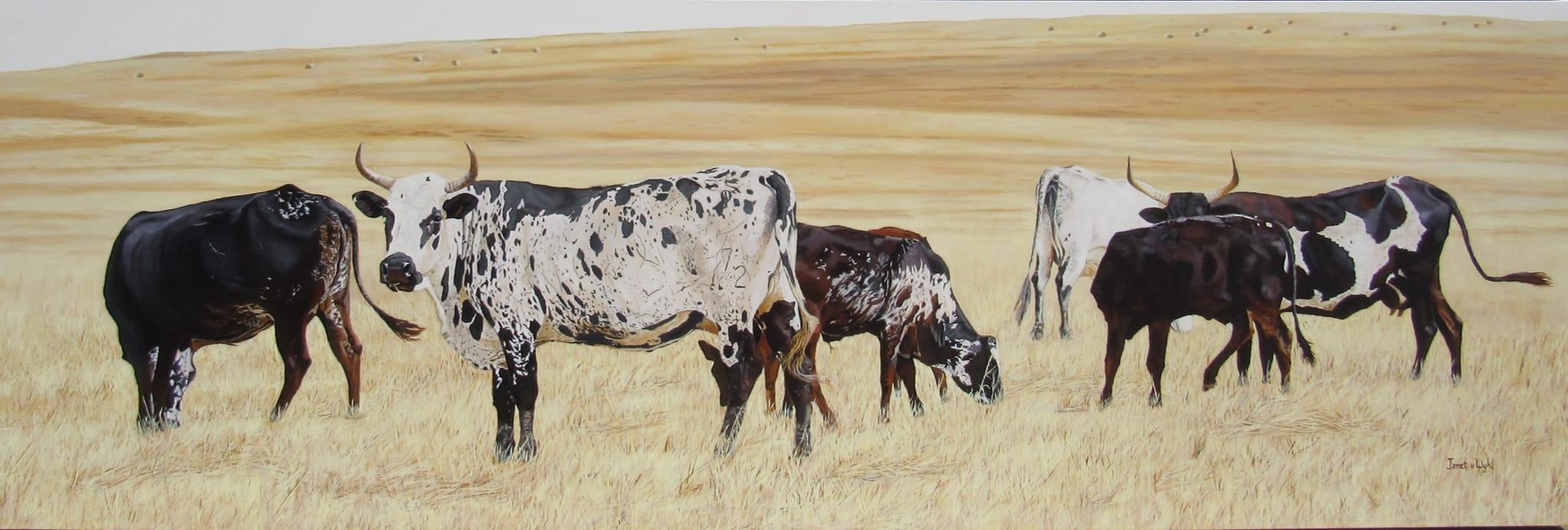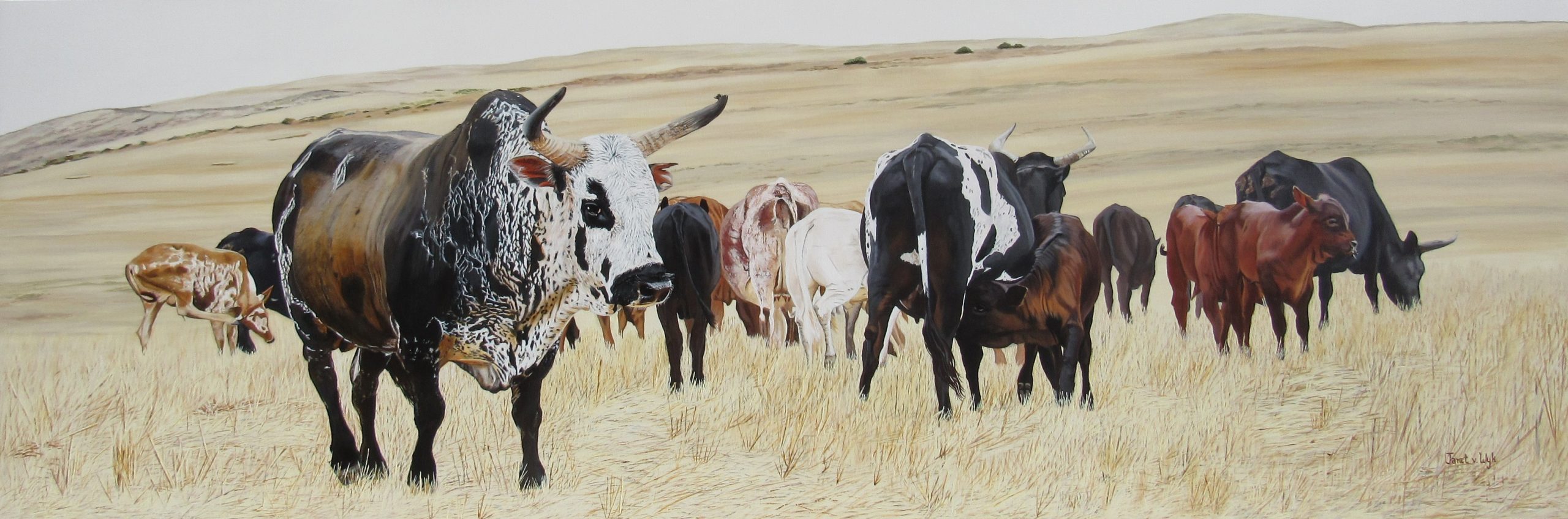 1,8 meter x 60cm, Acrylics This is my 2nd commissioned painting of the Swartland Nguni’s, and made for quite a journey. It was something different than what I normally do; thoroughly enjoyed it! Nic and Melanie, it was a privilege to paint this for you. Thanks to Kobus Saayman for the use of his beautiful…